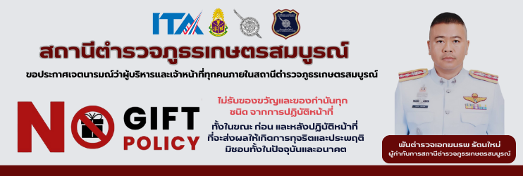 - ประกาศสำนักงานยุทธศาสตร์ตำรวจเรื่องเจตนารมณ์ที่จะไม่รับของขวัญหรือของกำนัลทุกชนิดจากการปฏิบัติหน้าที่