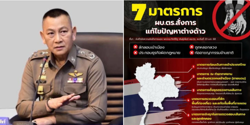 ผบ.ตร.บังคับใช้ 7 มาตรการเข้มข้น แก้ไขปัญหาคนต่างด้าวลักลอบหลบหนีเข้าเมือง ถูกหลอกลวง หรือประกอบธุรก