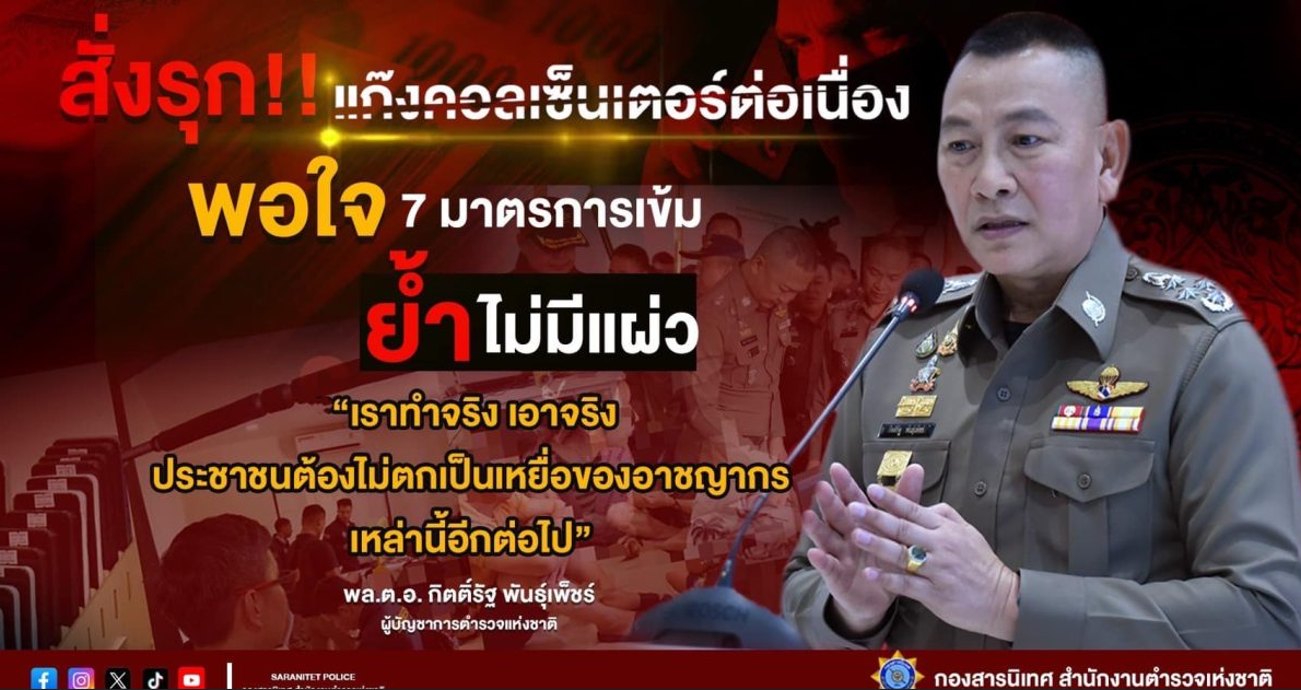 ผู้บัญชาการตำรวจแห่งชาติพอใจ 7 มาตรการเข้ม สั่งรุกปราบแก๊งคอลเซ็นเตอร์ ย้ำเดินหน้าไม่แผ่ว ไม่ให้พื้น